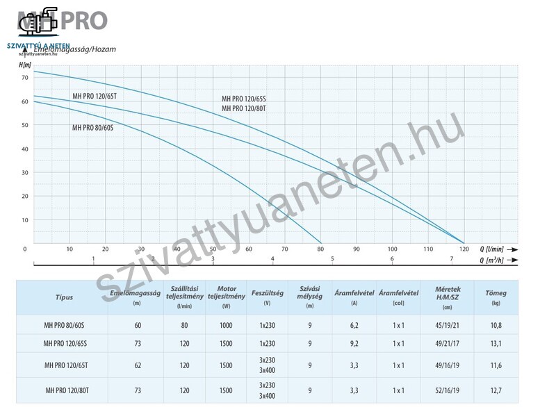 Az IPRO MH 80/60S többlépcsős önfelszívó felszíni kerti szivattyú kiváló minőségű alapanyagok felhasználásával készül, jó ár-érték arányban. Az IPRO MH szivattyúk venturi csővel rendelkeznek, melynek köszönhetően a szívókapacitást növeli, ezáltal még jobb hatásfokkal rendelkeznek.Saját forrásból származó tiszta, hideg víz szivattyúzására és nyomásfokozáshoz tervezett szivattyú. Ezeket a megbízható kerti szivattyúkat vízellátásra, öntözésre használják a lakossági szektorban, de autómosók, klímaberendezések és hűtésrendszerek üzemeltetésére is alkalmasak az ipari ágazatokban. Szívó és nyomó oldali csatlakozás 1 coll belső menettel. 230V-os egyfázisú motorral, tekercsbe épített termikus hővédelemmel, F szigeteléssel, IP 55 védettséggel.