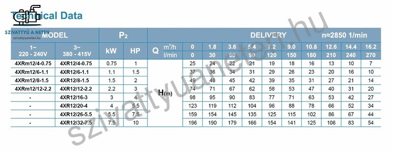 A Leo 4XR négy colos csőkút szivattyút búvárszivattyút elsősorban kisebb mezőgazdasági és ipari felhasználásra javasoljuk. A Leo 4XR 12/26-5,5 szivattyú gyári elektromos kábele 1,5 méter hosszúságú. Elektromos kábelhosszabbítás igénye esetén keresse ügyfélszolgálatunkat. Háromfázisú 400V-os motorral rendelkezik, hővédelem nélkül. Üzemeltetéséhez megfelelő motorvédelmet kell biztosítani. A Leo 4XR 12/26-5,5 búvárszivattyú csőkút szivattyú remek ár-érték arányú! 4 colos méretének köszönhetően 110, 125, 160 mm-es csőkútba is könnyedén és egyszerűen telepíthető. Motorteljesítménye P2 mindössze 5,5 KW. Homoktűrő képessége 150 g/m3.