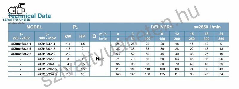 A Leo 4XR 16/20-5,5 műszaki adatai: