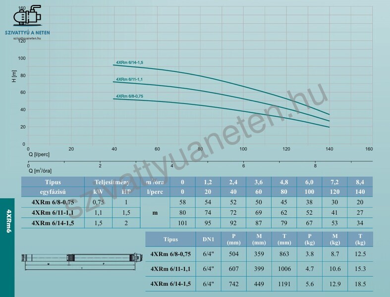 A Leo 4XRm négy colos csőkút szivattyút búvárszivattyút elsősorban lakossági felhasználásra javasoljuk. A Leo 4XRm 6/14-1,5 szivattyú gyári elektromos kábele 20 méter hosszúságú. Külső indítókondenzátoros kivitel. Az indítódobozban található a kondenzátor és a hőkioldó és egy billenő kapcsoló a be-és kikapcsoláshoz.