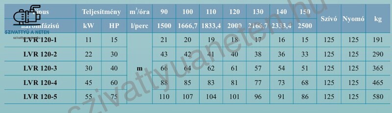 A Leo LVR 120-4 függőleges tengelyű szivattyú karimás csatlakozású vasöntvény talppal rendelkezik, a szivattyú borítás AISI 304 rozsdamentes acélból, Lapátkerekei szintén AISI 304 rozsdamentes acélból készülnek. Jó kopásállóságú kerámia-grafit tengelytömítése a motorteret védi vízbehatolás ellen. A Leo LVR 120-4 szivattyúval tiszta víz vagy ehhez hasonló mechanikus és kémiai szennyeződésektől mentes folyadék szivattyúzása lehetséges, melynek maximális hőmérséklete + 90 fok. Szívómélység maximum 6 méter. A Leo LVR 120-4 függőleges tengelyű szivattyú motorja háromfázisú 400V-os, mely F szigeteléssel és IP55 védettséggel rendelkezik. A motor réztekercselésell készül. Szívó oldali csatlakozása DN 125, a nyomóoldali csatlakozása DN 125. A szivattyúházban megengedett maximális nyomásérték 22 bar.