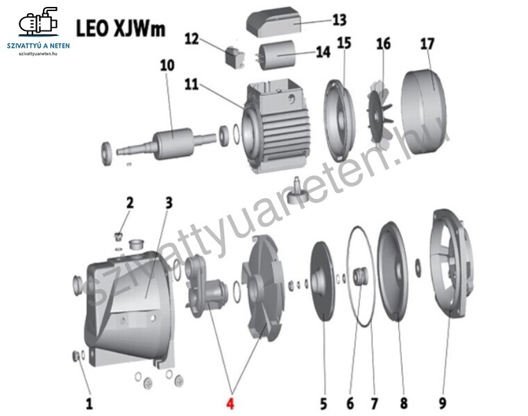 A termékképen látható (4) számú Leo XJWm 180/42 szivattyú alkatrész.