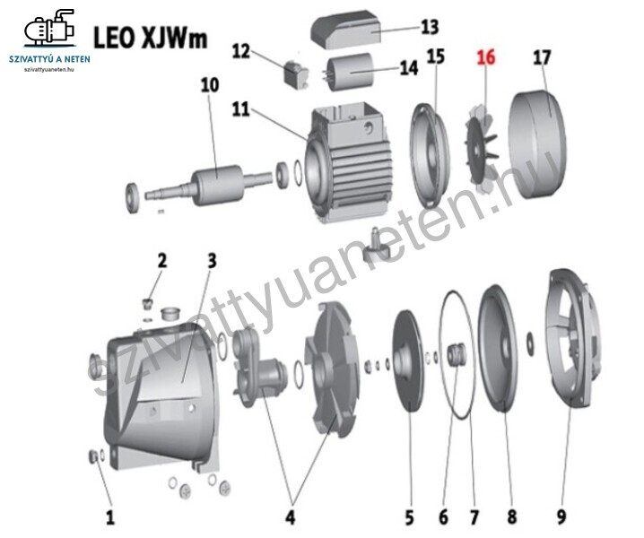 A termékképen látható (16) számú Leo XJWm 180/42 szivattyú alkatrész.