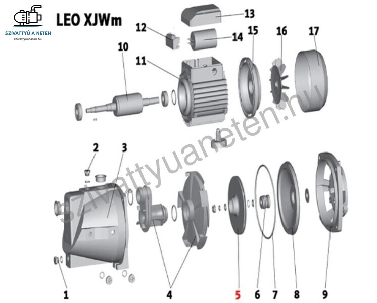 A termékképen látható (5) számú Leo XJWm 60/41 szivattyú alkatrész.