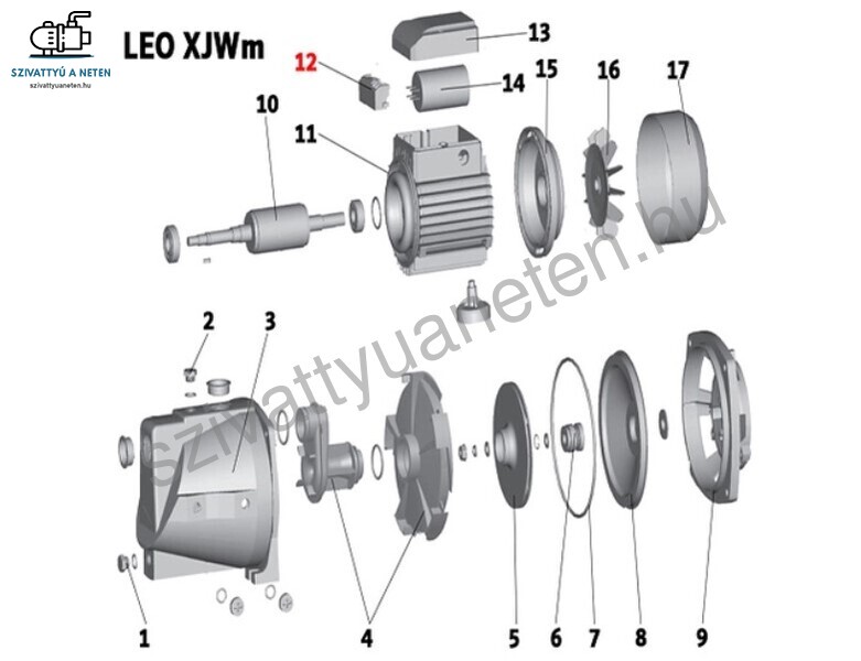 A termékképen látható (12) számú Leo XJWm 90/46 szivattyú alkatrész.