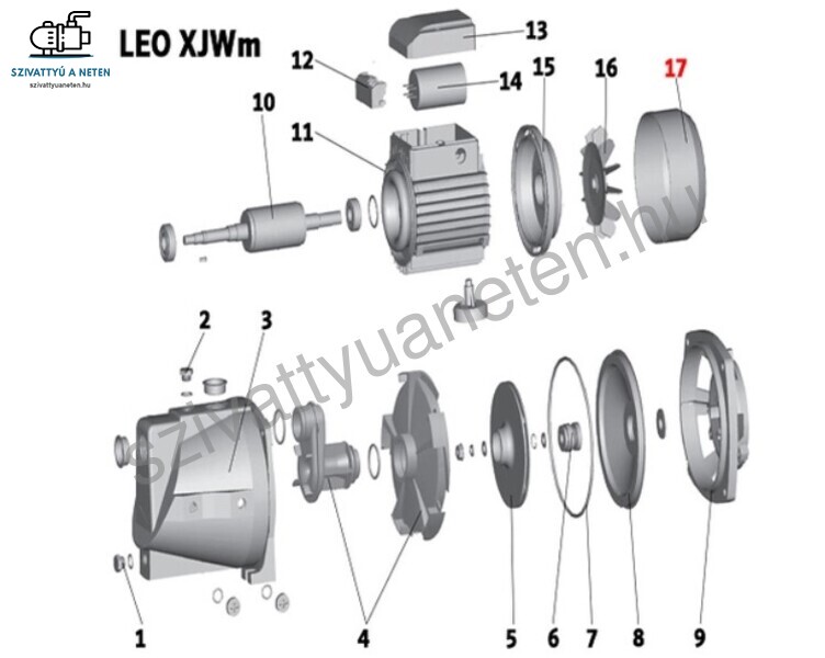 A termékképen látható (17) számú Leo XJWm 90/55 szivattyú alkatrész.