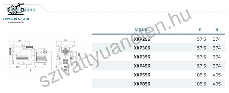 A Leo XKP-756 medence vízforgató szivattyú nagy méretű előszűrővel rendelkezik. A szivattyú ház erős és tartós műanyagból készül a belső lapátkerékkel és diffurzor egységgel együtt. A motortengely AISI 304 rozsdamentes acélból készül. Ezt a medence szivattyút maximum + 35 fokos folyadékhőmérsékletig lehet használni. A Leo XKP-756 medence vízforgató szivattyú elektromos motorja F szigeteléssel és IPX5 védelemmel rendelkezik, beépített termikus hővédelemmel. A szívó és nyomó oldali DN 50-es hollanderes csatlakozásokat a csomag tartalmazza. Maximális szívómélység 3,5 méter.