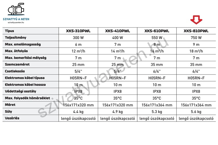 A LEO XKS-810PWL szennyezett vízszivattyú egy merülő szivattyú mely alkalmas szennyeződések jelenlétében is a víz szivattyúzására, maximum 35 mm-ig. Egyszerű műanyagházas felépítéssel készül, úszókapcsolóval, így automatikus üzemben is jól használható. Tömlővéggel együtt szállítjuk, melyre 5/4 colos, vagy 1 colos méretű tömlő rögzíthető. A Leo XKS-810PWL a vízszinttől számítva maximum 7 méterre meríthető. 10 méter hosszúságú gyári tápkebellel, villásdugóval és szimering tömítéssel. Ideális a ház körüli szennyezett vizek eltávolítására, aknákból, vagy víz gyűjtőkből. Könnyű kialakítás, és kezelhetőség.