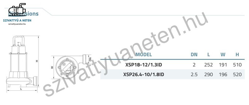 A Leo XSP18-12/1.3ID vágókéses darálós szennyvízszivattyú műszaki adatai:
