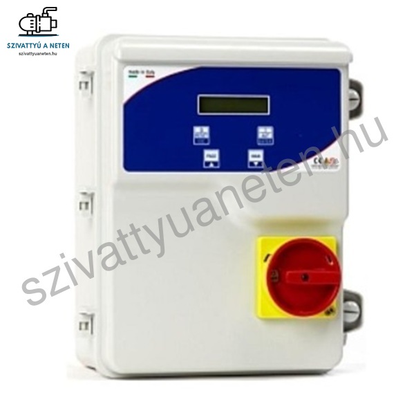 MAC3 DRY CONTROL PLUS 230V COS FI Vezérlőszekrény, 1 db. EGY fázisú szivattyúhoz, (2-16A), (0,37-2,2kW) motorvédelem és direkt indítással.