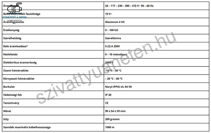 Az elektronikus szonda nem képes a szivattyú közvetlen vezérlésére a belső relé áramleadása miatt. Csatlakoztassa vezérlőszekrényre, vagy iktasson be egy mágneses relét a szivattyú és az elektronikus szonda csatlakozása közé.