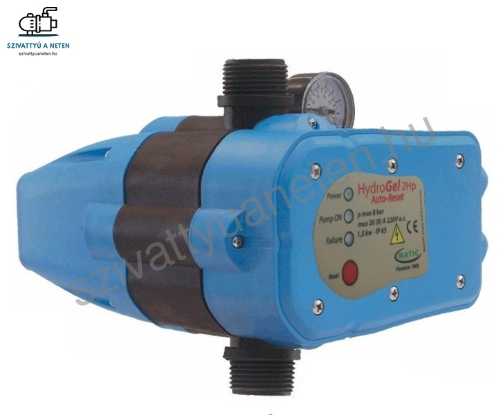 A Matic Hydrogel áramláskapcsoló automata működést biztosít felszíni kerti szivattyúk és csőbúvár szivattyúk számára. A készüléket maximum 1500W-os szivattyúval lehet összeépíteni, függőleges beépítéssel. Áramfelvétel maximum 8A. Automatikus újraindítási funkcióval.