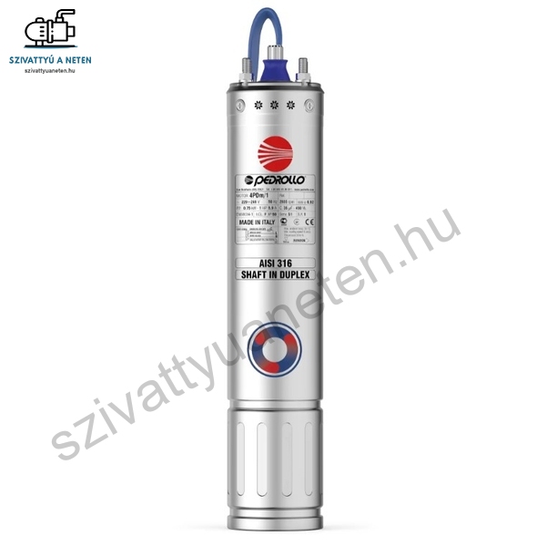 A Pedrollo 4PDm/3 búvárszivattyú motor DUPLEX rozsdamentes acél tengellyel készül, külső burkolata pedig AISI 316 rozsdamentes acélból. A DUPLEX acél kivételes mechanikai szilárdságáról ismert, mely kétszerese az AISI 304/316L acélénak. A Pedrollo 4PDm/3 2 méter hosszúságú gyári tápkábellel rendelkezik. Maximum + 40 fokos folyadékhőmérsékletig használható. A kiváló minőségű alapanyagok és tengelytömítéseknek köszönhetően ezek a búvárszivattyú motorok maximum 200 méterre meríthetőek a víz alá. Indítások száma/óra maximum 20, szabályos időközönként. A Pedrollo 4PDm/3 a megfelelő működése érdekében 8cm/mp áramlási sebesség szükséges. Folyamatos üzemű S1 motor, mely F szigetelési osztállyal, valamint IP 68 védettséggel rendelkezik. A NEMA szabvány szerinti kialakításnak köszönhetően más márkájú motorokkal is kiváltható, melyek szintén NEMA szabvágy csatlakozásokkal készült.