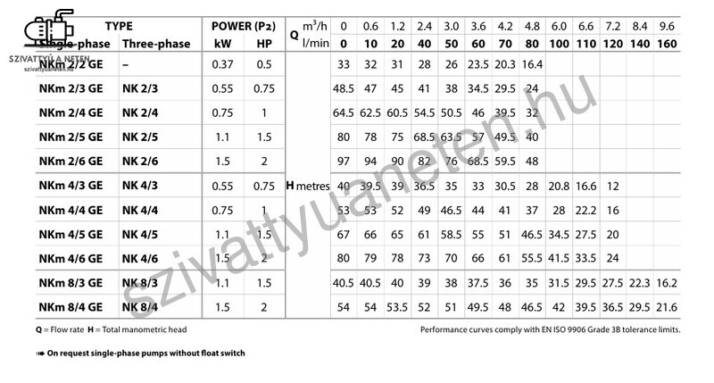 A Pedrollo NKm 4/5-GE ásott kút szivattyú legfőbb műszaki adatai: