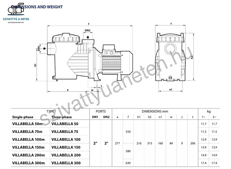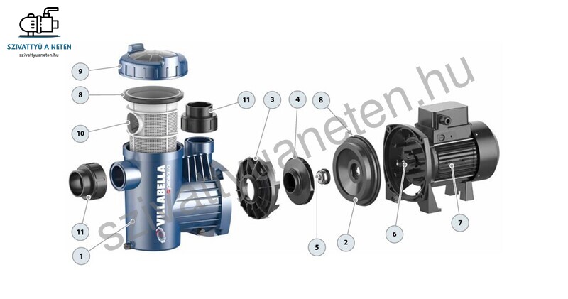 A Pedrollo Villabella 50T medence vízforgató szivattyú tartós, erős noryl járókerékkel készül, a motortengely pedig AISI 316 rozsdamentes acélból. Üvegszállal erősített polipropilén szívóházzal rendelkezik, mechanikus tömítése AISI 316 rozsdamentes acélból készül. Az előszűrő fedele pedig polikarbonátból. Az összeszereléshez AISI 304 rozsdamentes csavarok lettek felhasználva. A Pedrollo Villabella 50T medence szivattyú a legkorszerűbb IE3 motorokkal készül, természetesen réz tekercseléssel, F szigeteléssel. Védelmi besorolása: IP 55.