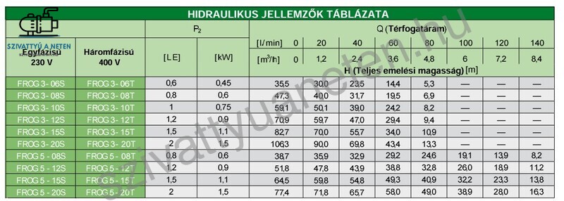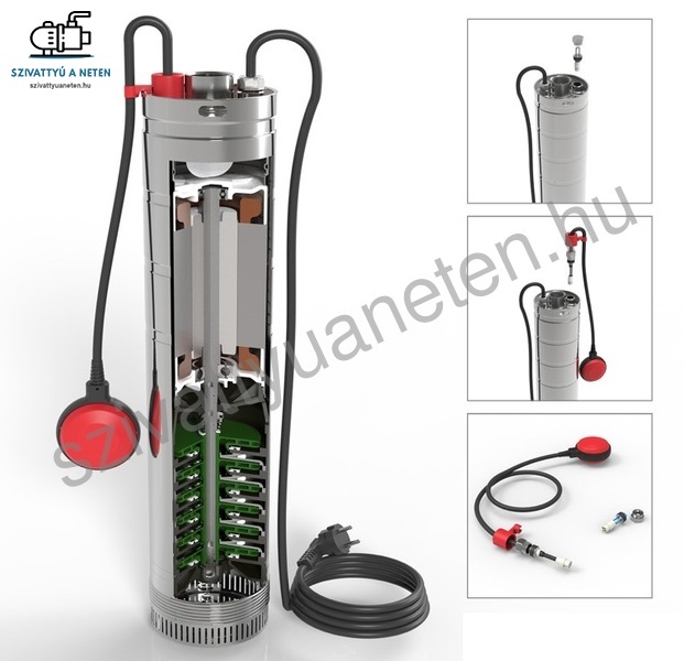 Úszókapcsolóval és gyári 20 méteres tápkábellel, 230V-os egyfázisú motorral, tekercsbe integrált hővédelemmel. Kettős csúszógyűrűs tömítés olajkamrával leválasztva jó kopásállósággal a motortér védelme érdekében.
