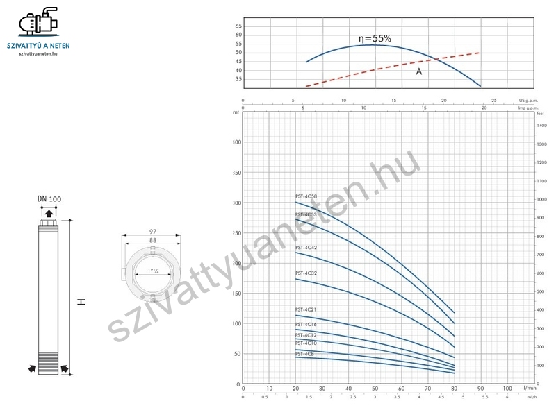A 100% -ban Olaszországban készült PST Techology SANDFIGHTER 4C42-T búvárszivattyú minimum DN110 átmérőjű kútban használható. A kiemelkedő homoktűrő képességnek köszönhetően, akár 800 g/m3 homok jelenlétében is alkalmas a víz szivattyúzására. A PST búvárszivattyú magas minőségű anyagok felhasználásával készül (AISI 304 és AISI 316 rozsdamentes acél, homoktűrő technopolimer, sárgaréz kombinációval). A berendezések telepíthetőek függőlegesen és vízszintesen (18 járókerékig) is. A berendezések gyárilag beépített (igény szerint leszerelhető) visszacsapó szeleppel kerülnek kiszállításra, a tápkábel hossza 1,5m, melynek szakszerű hosszabbítására felár ellenében lehetőséget biztosítunk. A 400V-os PST búvárszivattyú megfelelő motorvédelméről ne felejtsen el megfelelően gondoskodni!