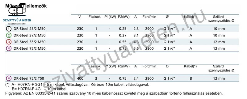 érintkező V-gyűrűvel. Szerkezet: króm-nikkel AISI 304 rozsdamentes acél. A Zenit DR Steel 37/2 M vízmentesítő szivattyú tiszta vízre használható. Lebegő szilárd szennyeződés maximum átmérője: 10 mm. Ideális választás a vizes helyiségek vízmentesítésére, lakossági és ipari felhasználásra egyaránt.