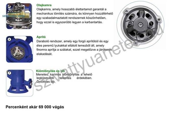 Vágókéses darálós szennyvízszivattyú egyfázisú 230V-os motorral úszókapcsolóval ellátva.